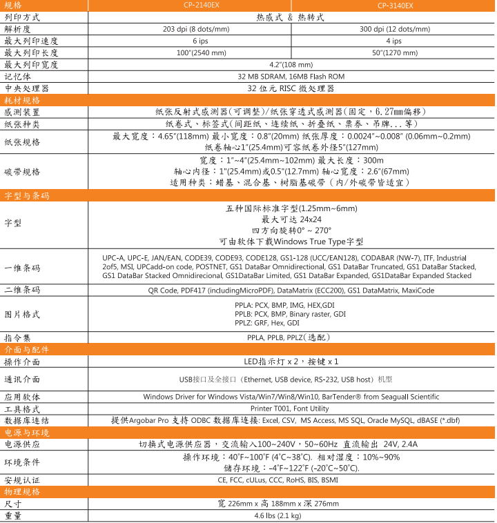 效能更加提升新的CP-2140EX在列印標簽時的速度比相機塊20%.加大記憶體容量,可以儲存更多的字型,表單和圖形。