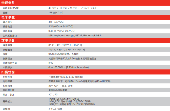 可全向讀取幾乎所有一維條碼和廣泛應用的二維條碼,包括質(zhì)量不佳的條碼。