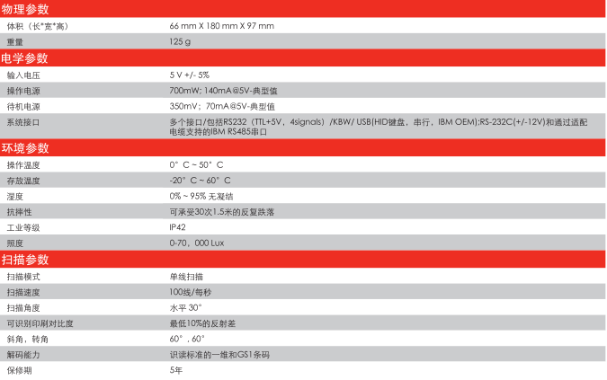掃描低質(zhì)量和破損條形碼的性能突出:提供省心省力的一維掃描解決方案,減少手工輸入數(shù)據(jù)的需要,提高了工作效率。