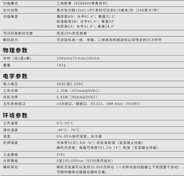 處于耐用性的考慮,Xenon 1900可以承受從1.8米高的地方到混凝土地面的50次反復(fù)跌落。IP41工業(yè)等級也為產(chǎn)品提供額外的保護。結(jié)實的構(gòu)造確保Xenon 1900可以實現(xiàn)多年無間斷操作的卓越性能。