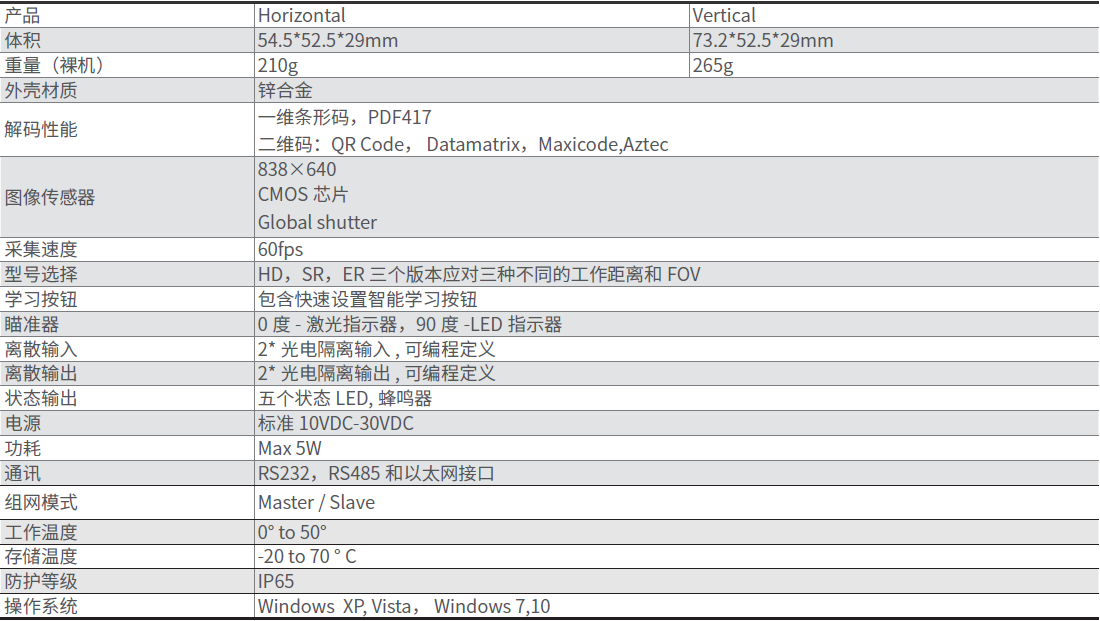 HF800 固定式二維工業(yè)讀碼器 技術(shù)參數(shù)